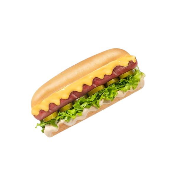 هوت دوج المشوي علي اللهب والغرقان في صوص الجبن الشيدر ومغطاة بصوص الباربيكيو المدخن